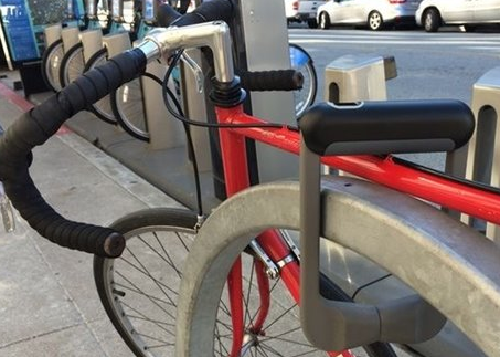 图片上的这个看上去有点潮的U形锁就是主角Grasp,它最大的亮点正如上文所说,就是只能用车主自己的指纹来开锁。Grasp配备基于光学的传感器,可以有效识别指纹,然后才会开锁。