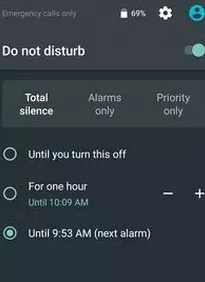 这项功能第一次移除是在Android 6.0更新的时候,而这项功能被设计出来也是因为安卓手机静音方式的需求,因为这项功能可以代替把手机声音调到最小的静音免打扰方式,当然这也是最简单的方法。在“下个闹钟前免打扰”功能设置下,你可选择接受所有消息或者只接收重要消息,亦或干脆什么消息都不接收。而且在闹钟响之前,你收到的消息会全部以静默方式推送。在闹钟提醒后,你的一切消息推送都会回归正常。