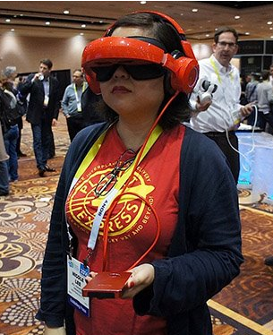 用户戴上耳机后感觉就像是在看一个60英寸的电视机,并能够体验身临其境般的感觉。虽然佩戴这款耳机时不能戴眼镜,但你可以通过耳机下方的拨盘来调整焦距和瞳距。