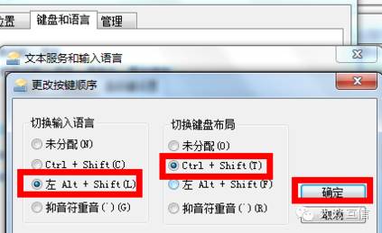 在弹出对话框里,根据你的习惯选择切换输入法的快捷键组合!如下图所示!选中后点击确定按钮!