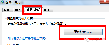 在键盘与语言栏位,我们选择“更改键盘”按钮进入!