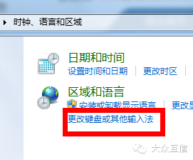 在区域语言设置菜单选择“更改键盘或输入法”。