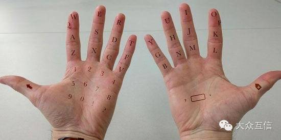 与右手的下半部分不同,左手的下半部分则是需要用右手轻触输入的。数字很常用,但不如空格键常用,所以可以用另一只手来输入。