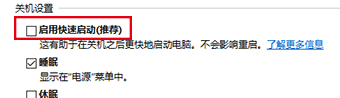 4、取消勾选“启用快速启动(推荐)”,如下图——