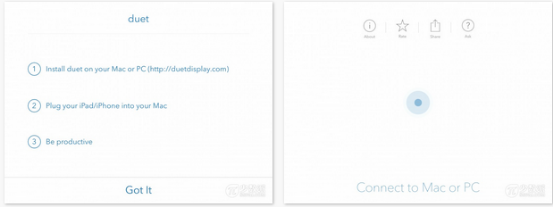 首先,登陆Duet Display同名官网下载PC或Mac版应用,安装即可。然后在iPad Pro的AppStore中搜索“Duet Display”,购买并下载。