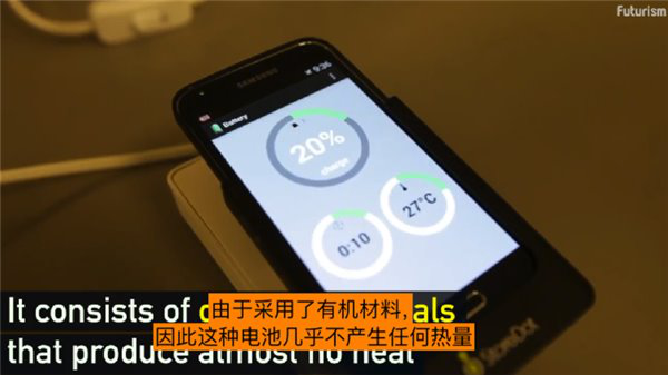 另外,由于采用了有机材料,他们的电池还几乎不会发烫。这也解决了目前手机电池面临的一大问题。