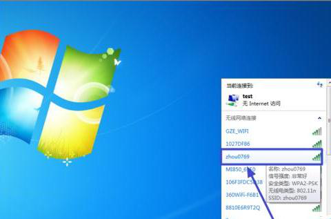 安装上驱动之后,连接无线网络就简单了,WIN7系统右下角,如图示点击图标,打开网络和共享中心,这里会显示搜索到的所有SSID,选择你的SSID点击连接。